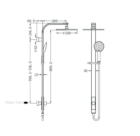 - 3 function hand held and 250mm overhead