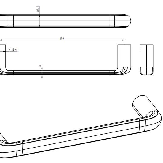 BERLIN Guest Towel Bar 250mm