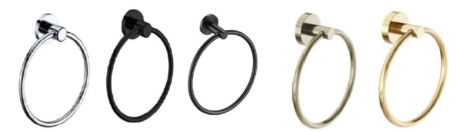 The CHOICE Round Towel Ring is available in five stylish colors, each offering a unique aesthetic to complement various bathroom themes. Here's a description of the possible color options: