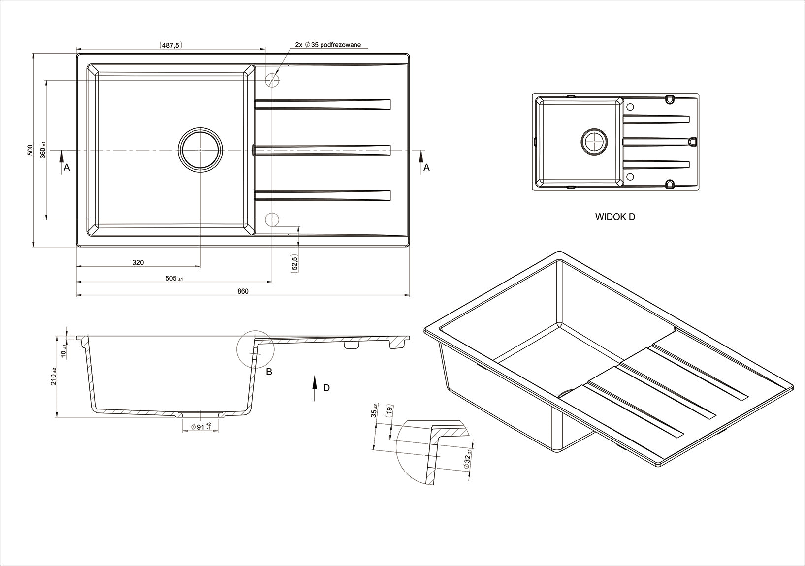 - Top Mount with drainer