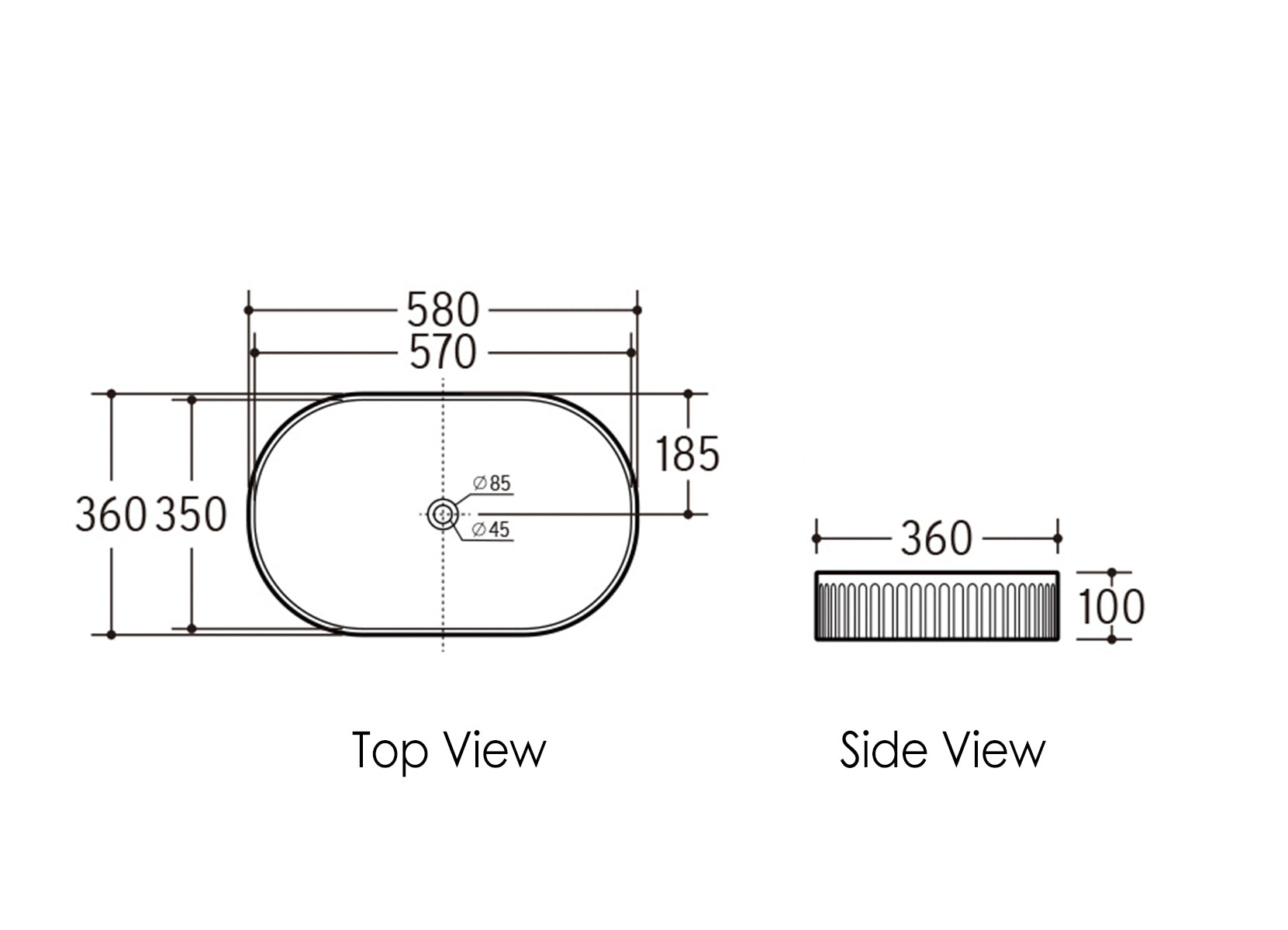 Kensington Oval Basin 580x360x120