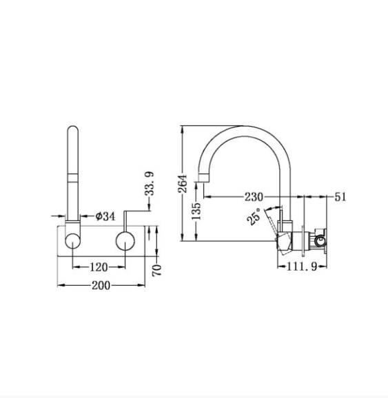 Mecca Wall Basin/Bath Mixer Swivel Spout Handle Up