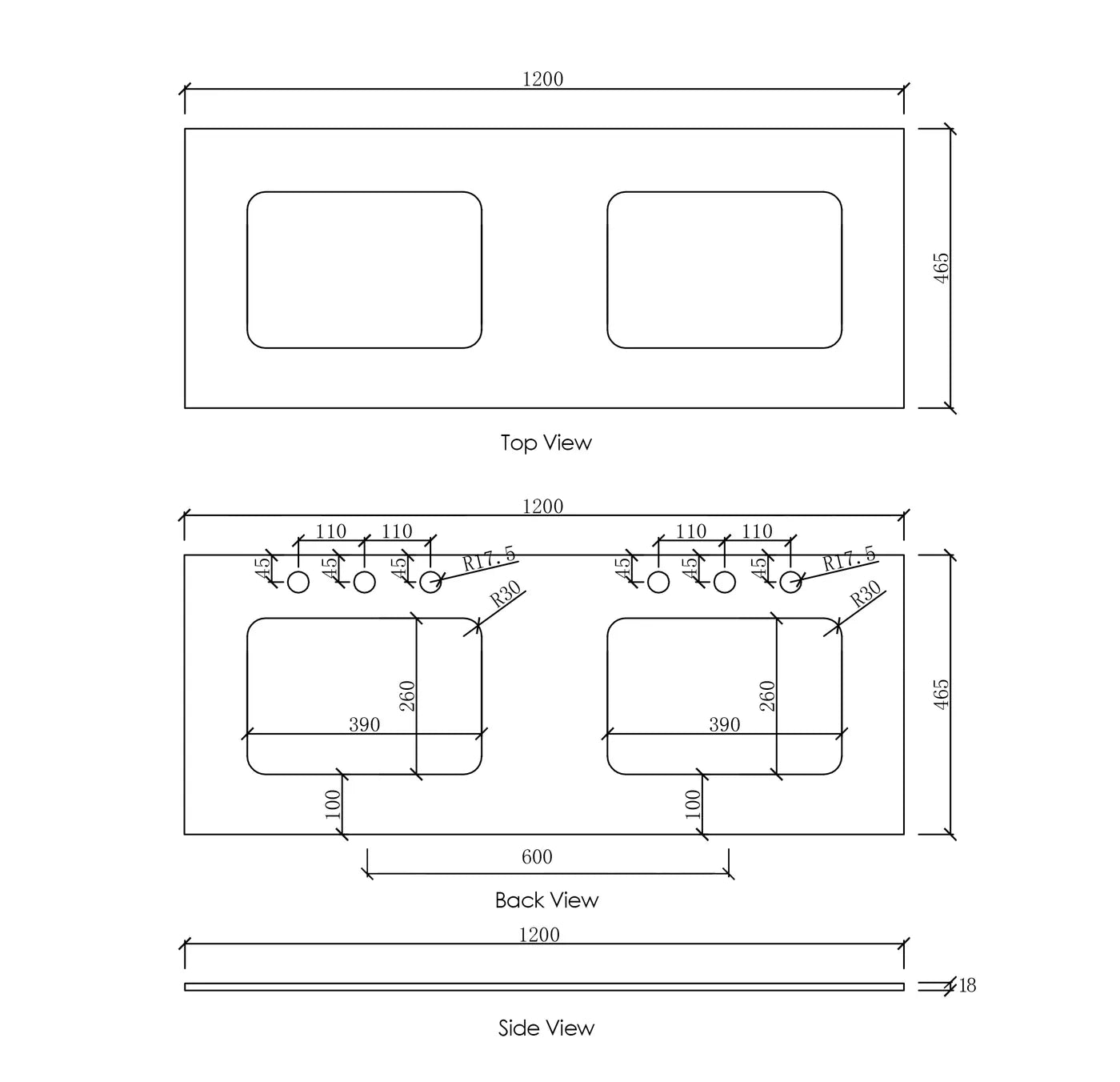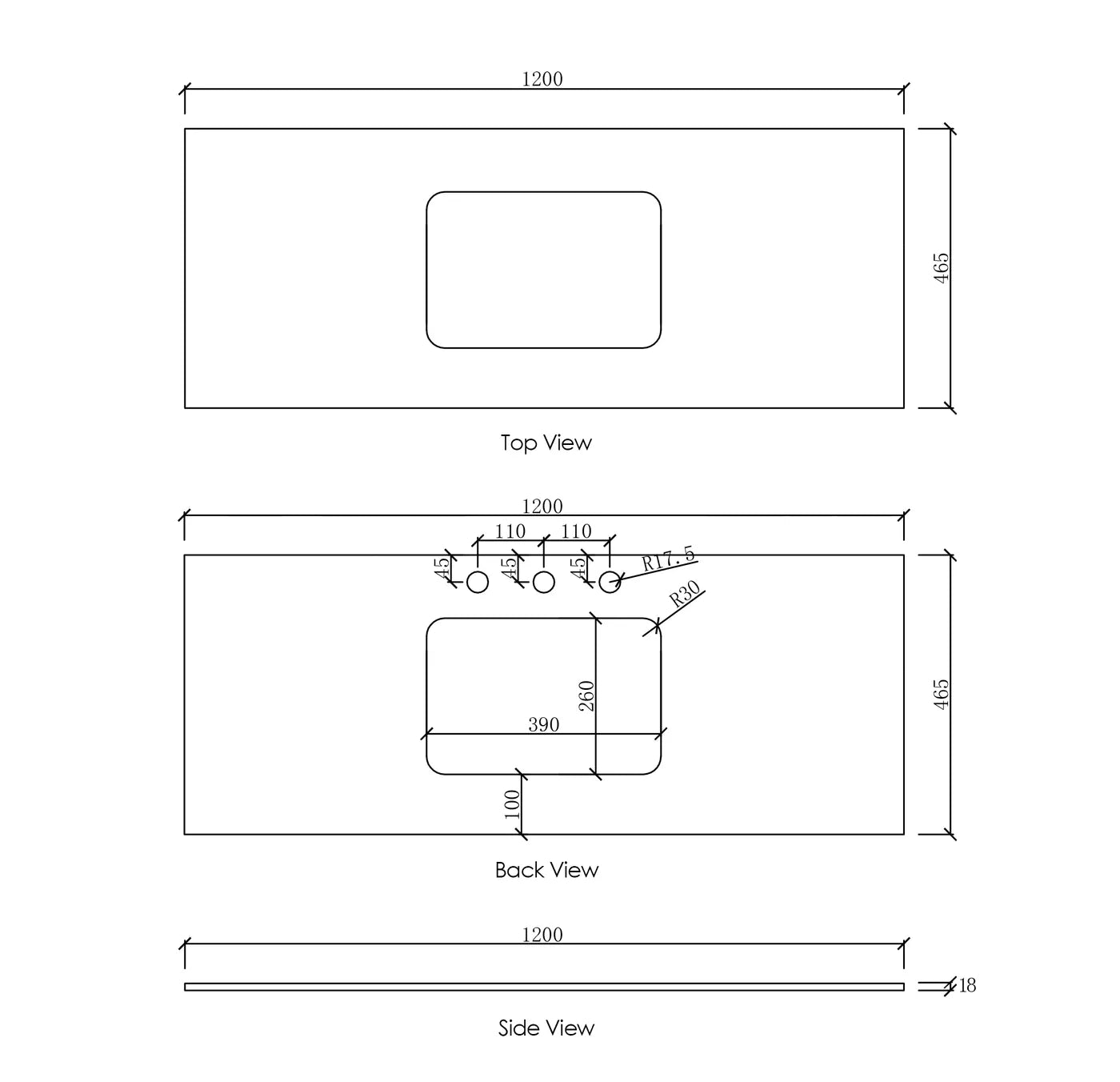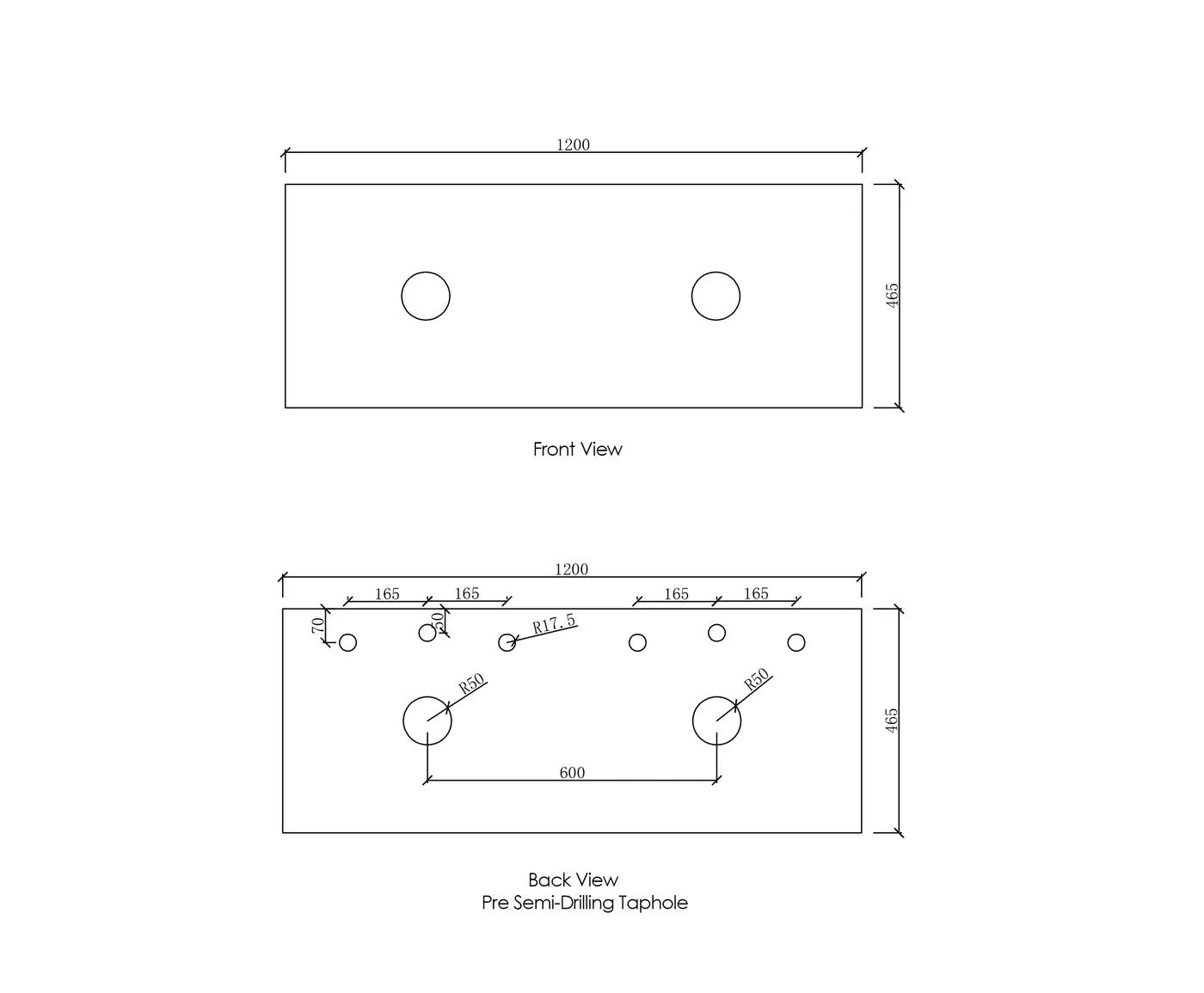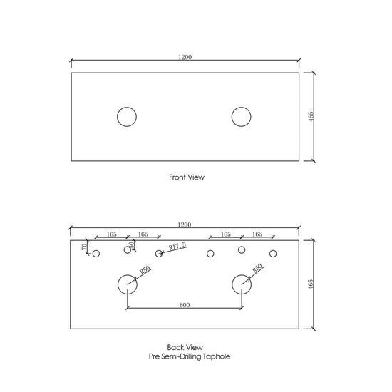 Tap holes can be added at an additional cost, please email for enquiries.