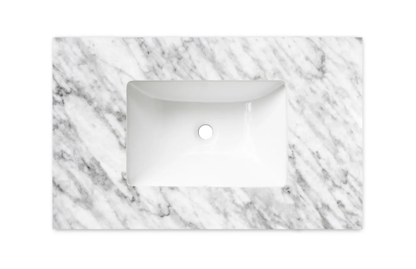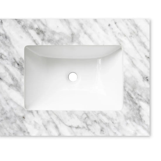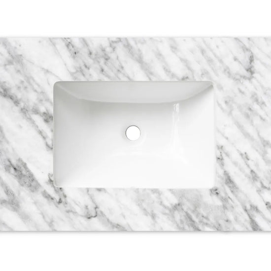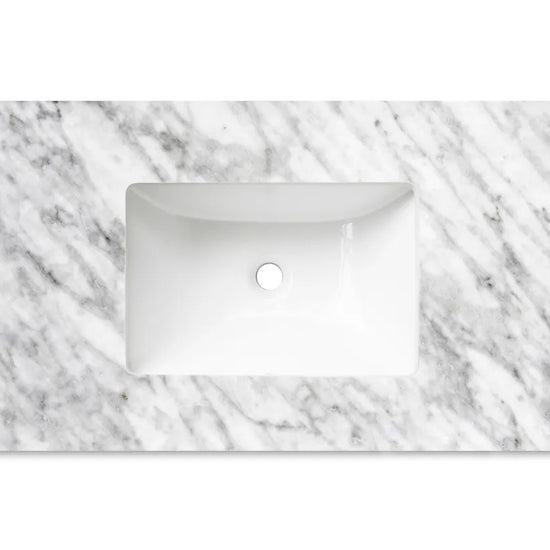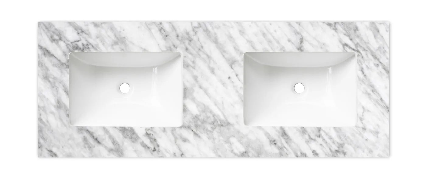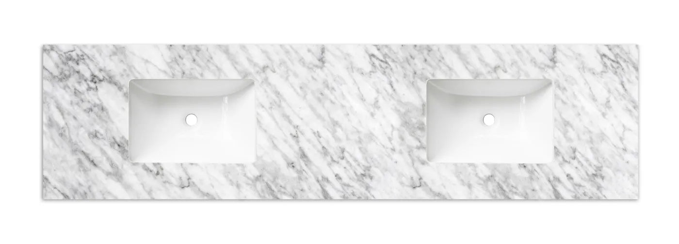 A premium Natural Carrara Marble Top featuring a smooth, polished surface and distinctive natural veining. Renowned for its timeless aesthetic and durability, it provides a refined and sophisticated finish suitable for a wide range of bathroom styles.