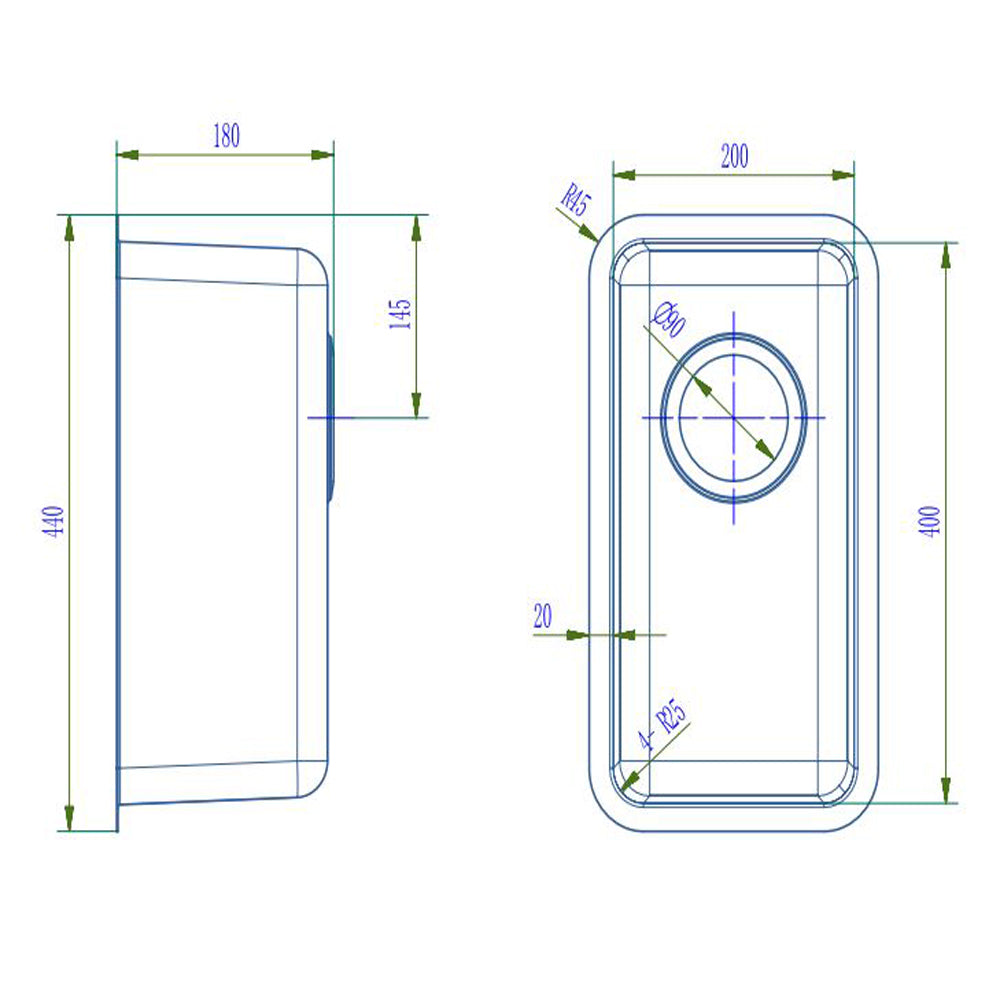 - 440(L)MM x 240(W)MM x 200(H)MM