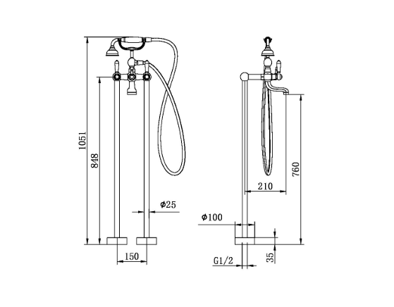 The York Freestanding Bath Set with Metal Hand Shower offers a stylish and functional upgrade for any bathroom. Featuring a traditional design, it includes a durable metal hand shower for convenient rinsing and cleaning. Its freestanding installation allows for flexible placement, while the high-quality materials ensure long-lasting performance. Perfect for adding a touch of luxury to your bath experience.