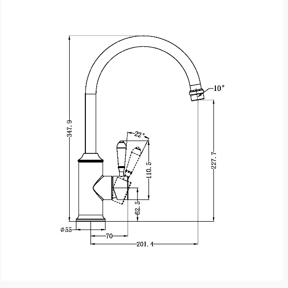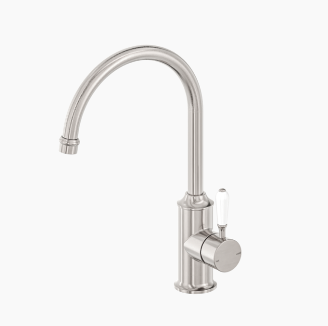 York Kitchen Mixer Gooseneck Spout With White Porcelain Lever